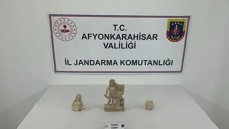 Afyonkarahisar İl Jandarma Komutanlığı ekipleri, kaçakçılıkla mücadele çalışmaları kapsamında düzenledikleri operasyonda Roma dönemine ait olduğu değerlendirilen üç adet heykel ele geçirdi.