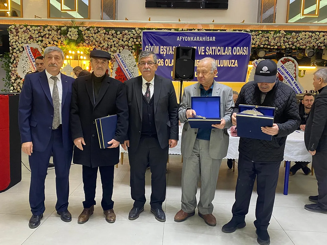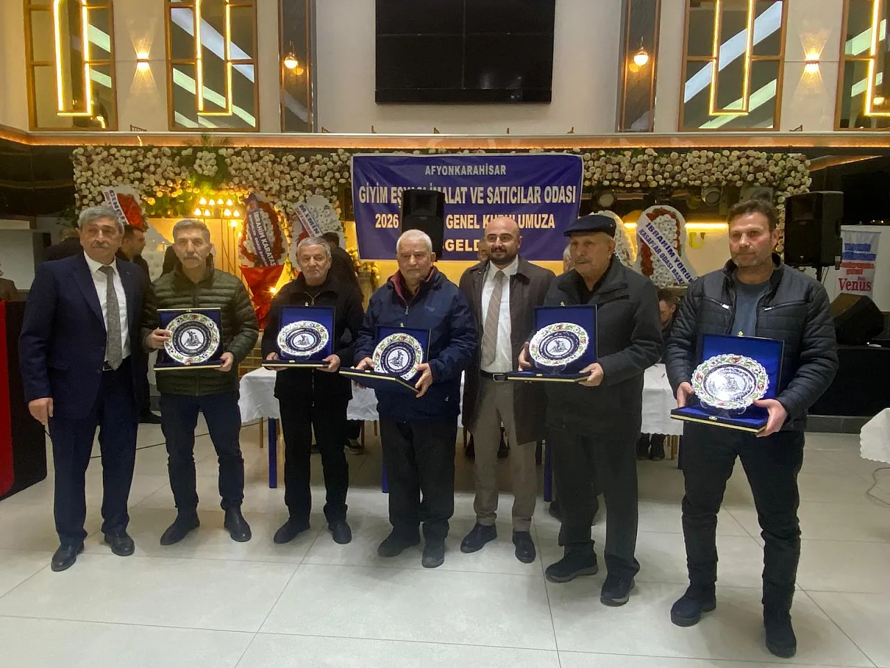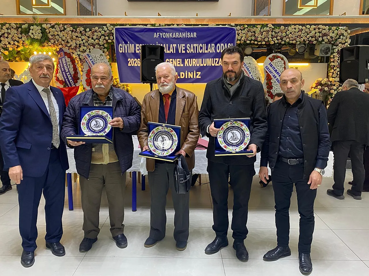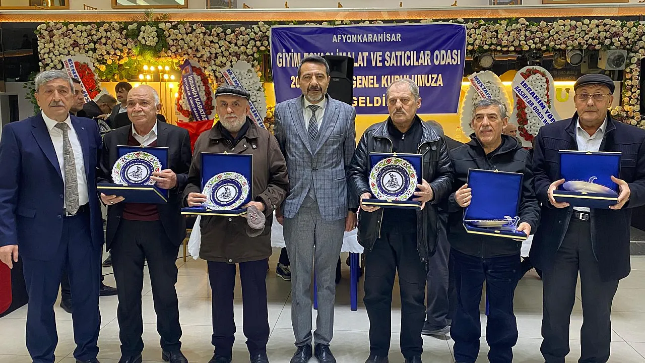Afyonkarahisar Giyim Eşyası İmalat ve Satıcıları Esnaf Odası genel kurul toplantısında meslekte 40 yılı aşan oda üyesi ustalara plaket takdim edildi.