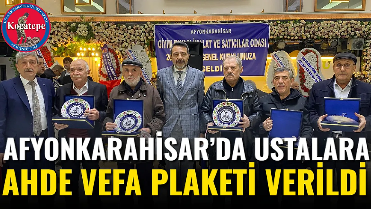Afyonkarahisar'da meslekte 40 yılı dolduran çırak ve kalfa yetiştiren giyim eşyası imalat ve satıcılarına plaket verildi.