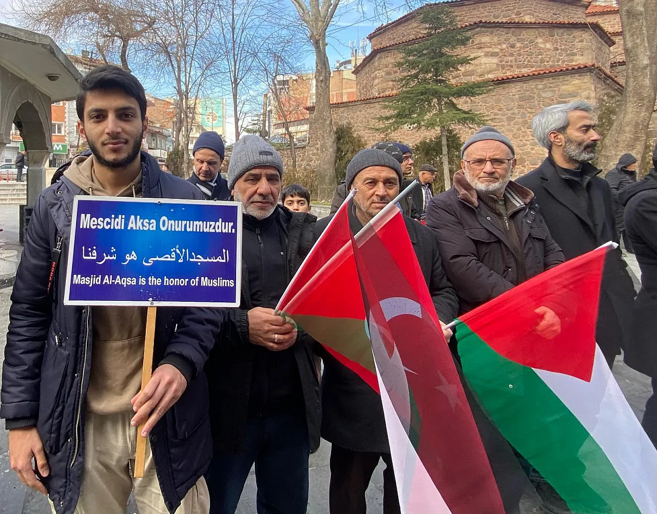Afyonkarahisar Milli İrade Platformu adına açıklamayı Filistinli Abdurrahman El Abunada, Afyonkarahisar halkının dikkatini kutsal şehir Kudüs'e çevirmek için toplandıklarını söyledi.