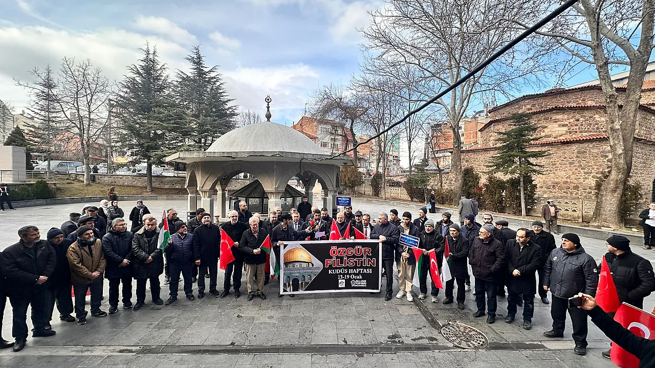 Afyonkarahisar Milli İrade Platformu tarafından düzenlenen “Direnişten Dirilişi Kudüs” temalı basın açıklaması Gedik Ahmet Paşa (İmaret) Camii bahçesinde Cuma namazı gerçekleştirdi.