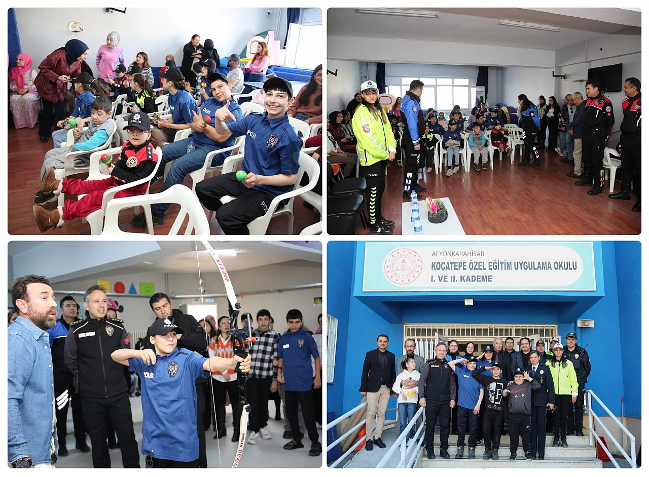 Afyonkarahisar İl Emniyet Müdürlüğünden yapılan açıklamada, "Kocatepe Özel Eğitim Uygulama Okulunu 3 Aralık Dünya Engelliler Günü nedeniyle ziyaret eden Afyonkarahisar İl Emniyet Müdürü Sayın Ahmet Birtan Erol'un ziyareti sırasında, belirlenen ihtiyaçlar doğrultusunda temin edilen spor malzemelerini, müzik aletlerini ve diğer eğitim araç gereçlerini okula giderek özel evlatlarımıza memnuniyetle teslim ettik. Her biri ayrı bir umut ve ayrı bir güzellik taşıyan özel çocuklarımızın gözlerindeki mutluluğa bir kez daha şahit olduk. Evlatlarımızın gelişimlerini destekleyecek eğitim araçlarının onların dünyasında yeni kapılar açacağına inanıyoruz. Bu çalışmanın hayata geçirilmesinde bizlere daima güç veren, özel gereksinimli çocuklarımızın eğitimi ve gelişimine ayrı önem gösteren Afyonkarahisar Valisi Doç. Dr. Kübra Güran Yiğitbaşı'nın destekleri, bu anlamlı adımın en değerli parçası olmuştur. Onların daha iyi şartlarda eğitim görmesine katkı sağlamanın gururunu taşıyoruz. Özel evlatlarımızın yanında olmak, ihtiyaçlarını karşılamak ve hayallerine ortak olmak sadece bir görev değil; yüreğimizden gelen bir sorumluluktur. Afyonkarahisar Emniyet Müdürlüğü olarak, geleceğimizin en kıymetli parçaları olan özel çocuklarımızın her zaman destekçisi olmaya; gelişimlerine, eğitimlerine ve mutluluklarına katkı sağlamaya devam edeceğiz. İyi ki varsınız güzel çocuklar, biz hep yanınızdayız." denildi.