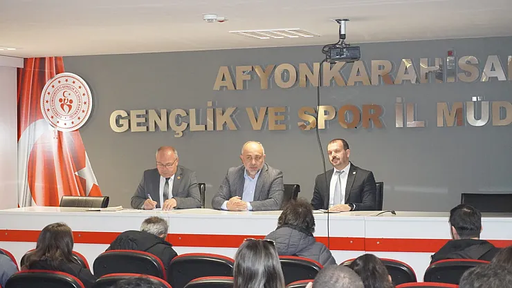 Afyonkarahisar Gençlik ve Spor İl Müdürü İsmail Hakkı Kasapoğlu’nun başkanlığında, antrenörlerin katılımıyla değerlendirme toplantısı düzenlendi.