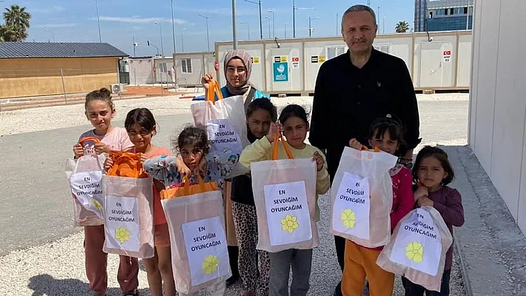 Afyonkarahisar İl Müftülüğüne bağlı 4-6 yaş Kur’an kursu öğrencileri, velileri ve öğreticilerin yardımlarıyla “En Sevdiğim Oyuncağım” paketleri hazırlayarak, çocuklara hediye edilmesi için, Afyonkarahisar İl Müftüsü Sinan Kazancı’ya teslim etti. İl Müftüsü Sinan Kazancı, “Çevreme Duyarlıyım, Değerlerime Sahip Çıkıyorum (ÇEDES)” projesi kapsamında Şuhut Fatih İlköğretim Okulu öğrencilerinin de ayrıca hazırlamış olduğu oyuncaklarla birlikte, iki ayrı çadır kentte eğitim gören, 4-6 yaş ve 7-10 yaş öğrencilerine hediye etti.