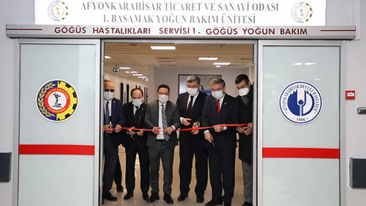 Afyonkarahisar Devlet Hastanesi’nde 48 oda, 114 yataklı Afyonkarahisar Ticaret ve Sanayi Odası 1. Basamak Yoğun Bakım Ünitesi açılış töreni gerçekleştirildi. Açılış töreninde konuşan Vali Gökmen Çiçek, “Ticaret ve Sanayi Odası’nın bu yaptığı ile şunu açık yüreklilikle söyleyebiliyoruz: Afyonkarahisar’da yoğum bakım sıkıntımız yok” dedi