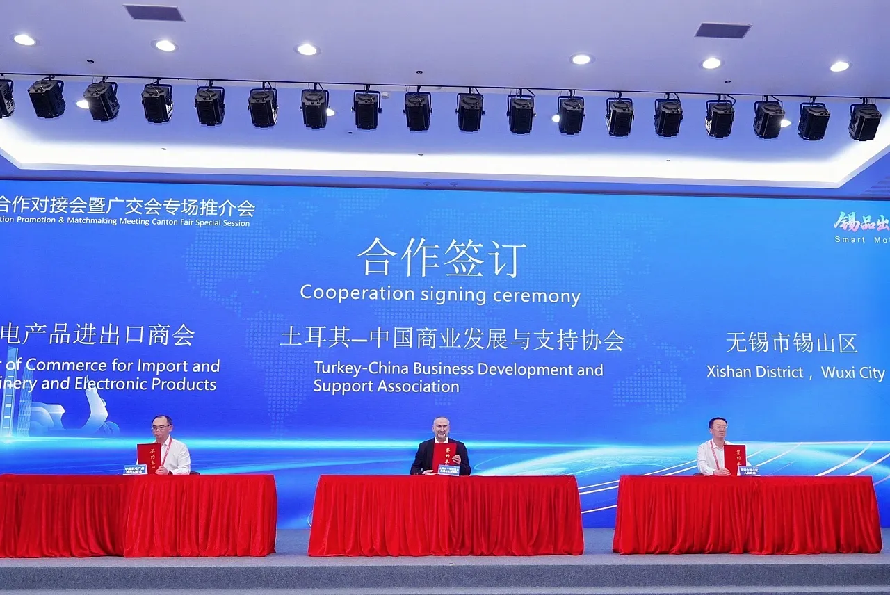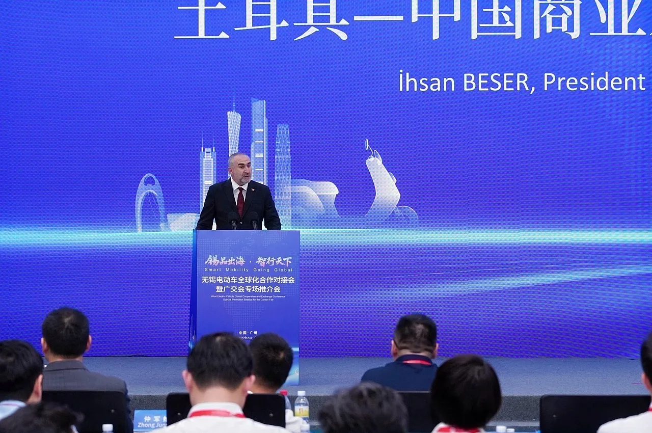 Türkiye-Çin İş Geliştirme ve Destekleme Derneği Genel Başkanı İhsan Beşer, Çin’de 3 ayrı fazda düzenlenen Kanton Fuarı’nda Wuxi Elektrikli Araç Küreselleşme İş Birliği Tanıtım ve Eşleştirme Toplantısı’na katıldı. Başkan Beşer, bu toplantıda bir konuşma yaparak Türkiye-Çin ilişkilerini ve ticaret hacminin nasıl ilerleyeceğini anlattı.