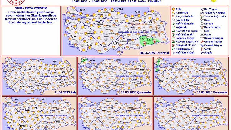Meteoroloji Genel Müdürlüğü'nün bugünten itibaren başlayan yeni haftaya dair hava tahmin raporları yayınlandı.