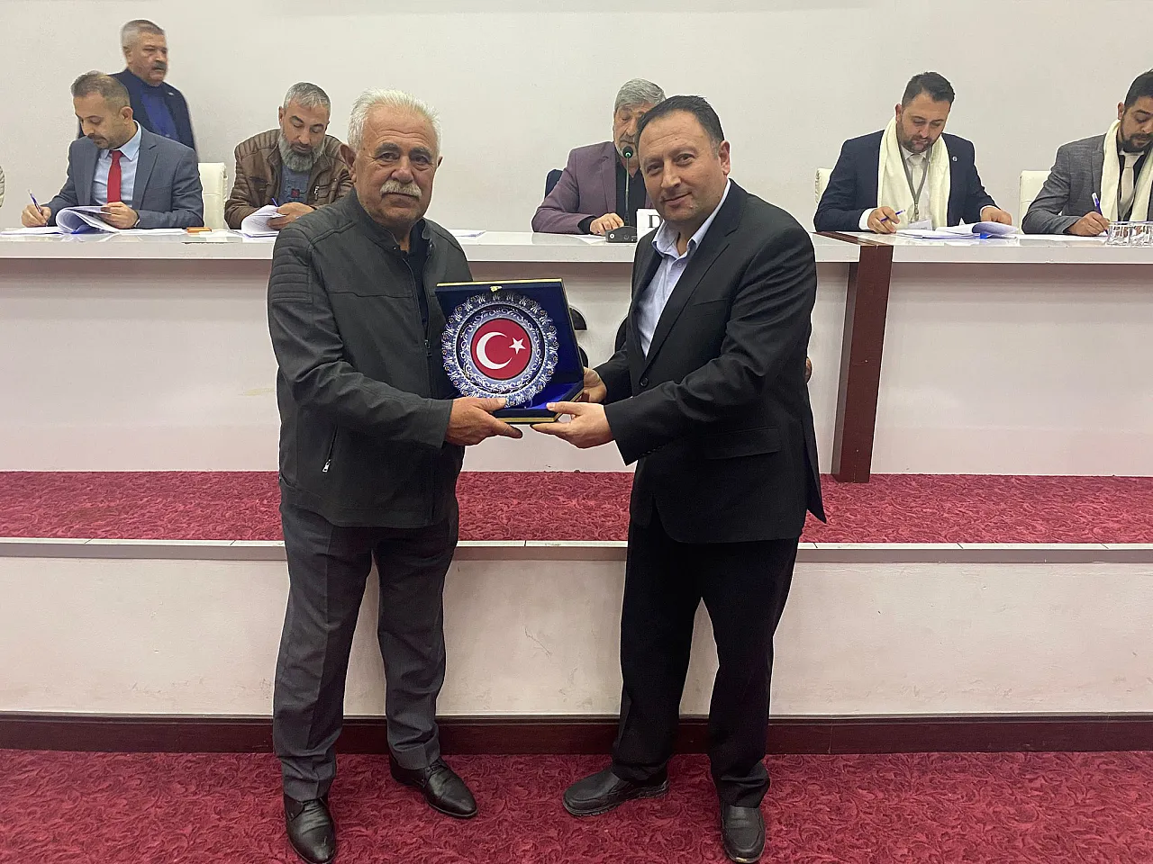 Afyonkarahisar Ağaç İşleri Esnaf ve Sanatkârlar Odası’nın mevcut Başkanı Suat Diler ile Mehmet Küçükuygur’a plaketlerini Afyonkarahisar Esnaf ve Sanatkârlar Odaları Birliği (ESOB) Başkanı Cengiz Üstün takdim etti.
