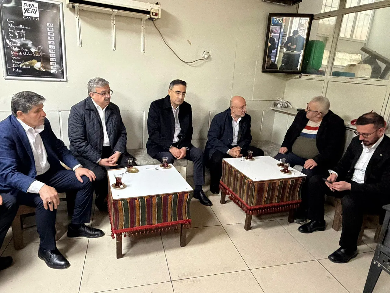 AK Parti heyeti esnafın çayını içip, sohbet ederken; vatandaşların taleplerini yerinde dinledi.