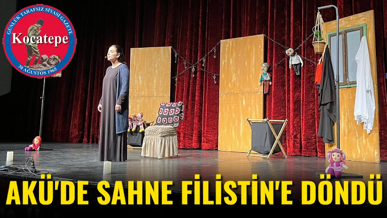 Afyon Kocatepe Üniversitesi (AKÜ) Atatürk Kongre Merkezinde Yazar ve Oyuncu Nurdan Albamya İnce'nin kaleme alıp sahneye taşıdığı 'Filistin Hakkında Konuşmalıyız' adlı tiyatro oyunu, izleyiciyle buluştu.