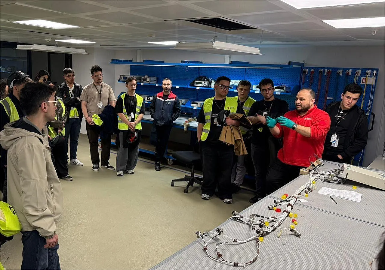 Gezi kapsamında sektör profesyonelleriyle bir araya gelen öğrenciler, uçak bakım sistemleri ve mühendislik uygulamaları hakkında detaylı bilgi alırken, kariyer planlamalarına yönelik saha deneyimi yaşadı.