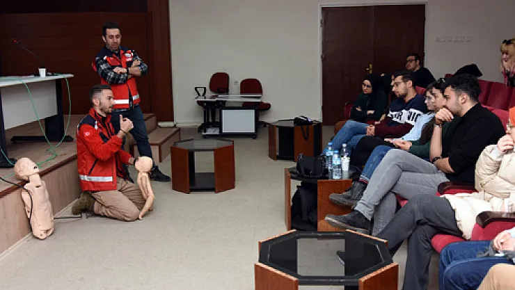 Afyon Kocatepe Üniversitesi (AKÜ) öğrencilerine Afyonkarahisar Sağlık Müdürlüğü İl Afet Birimi personelleri tarafından “İlk Yardım” eğitimi verildi