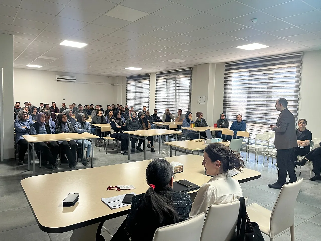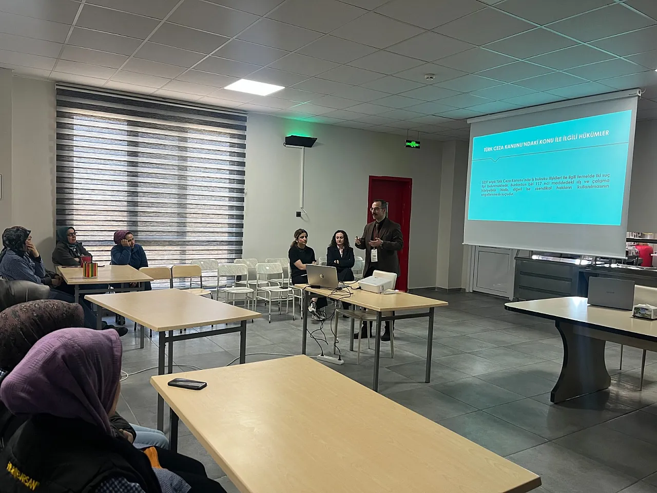 Eğitim kapsamında; Dr. Öğretim Üyesi Hakan Kaşka, Dr. Öğretim Üyesi Yunus Yılan, Arş. Gör. Dr. Zehra Alp ve Araştırma Görevlisi Nilay Kaşka tarafından endüstri ilişkileri, iş hukuku ve sendikalar hukuku çerçevesinde örgütlenme özgürlüğü, ayrımcılık yapmama ilkesi ve yöneticilerin çalışanlarla etkili iletişimi konuları ele alındı.
