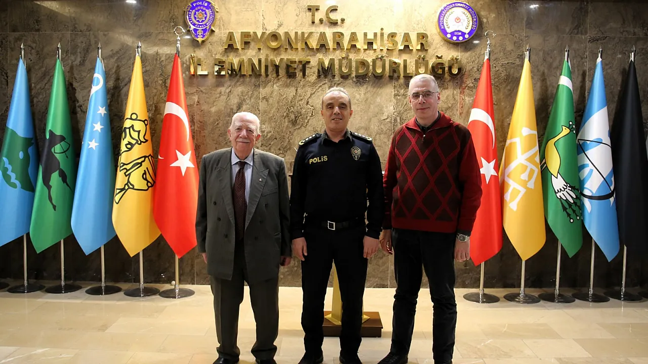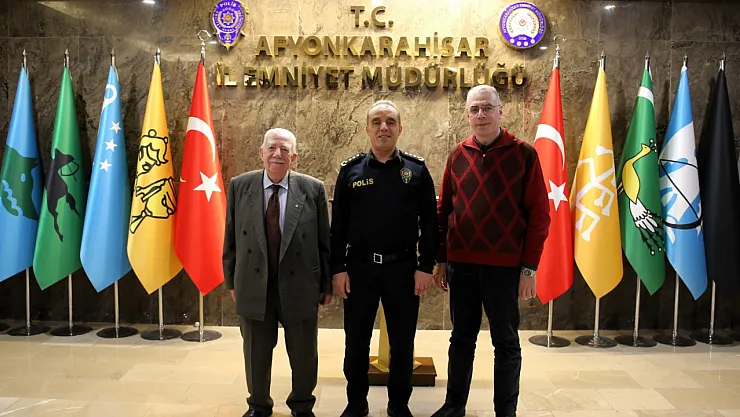 Afyonkarahisar Yaş Sebze Meyve Komisyoncuları Birlik ve Dayanışma Derneği ile Hal Başkanı Ali İhsan Çiloğlu ve oğlu Ahmet Çiloğlu, İl Emniyet Müdürü Ahmet Birtan Erol'u makamında ziyaret etti.