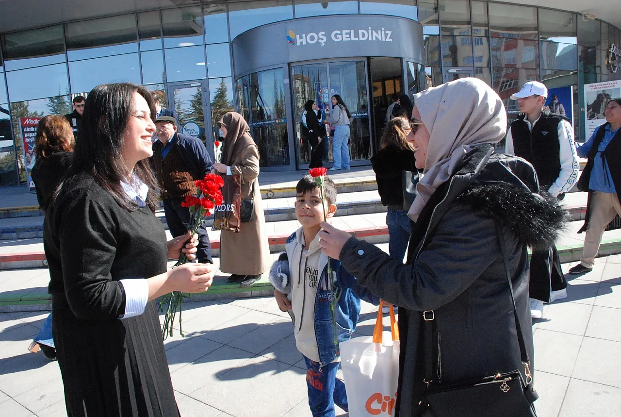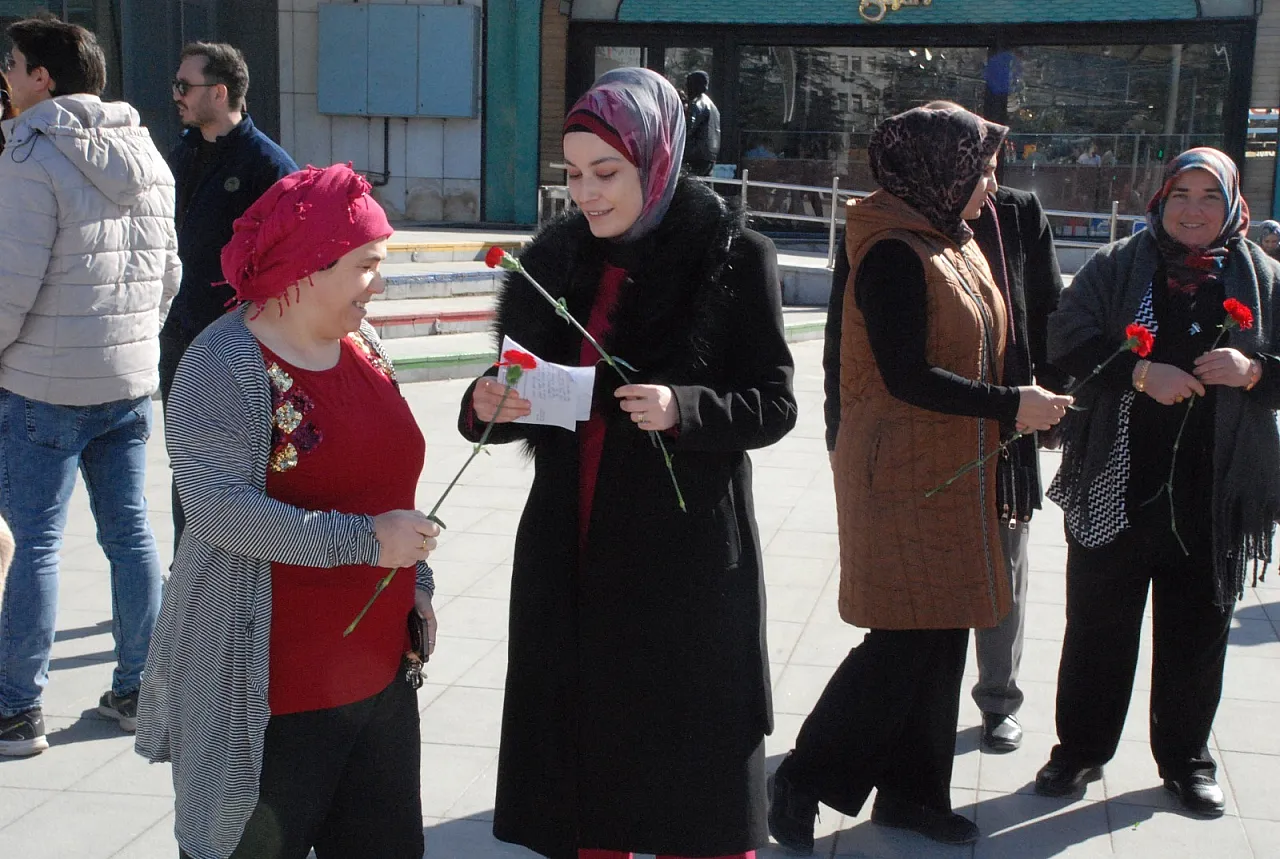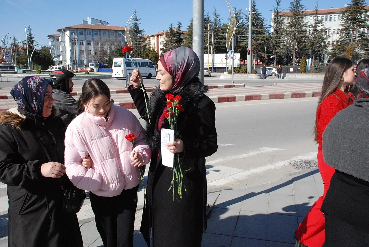 Anahtar Parti Afyonkarahisar İl Sekreteri Av. Rukiye Önder Sel, 8 Mart Dünya Kadınlar Günü dolayısıyla kadınlara karanfil dağıttı
