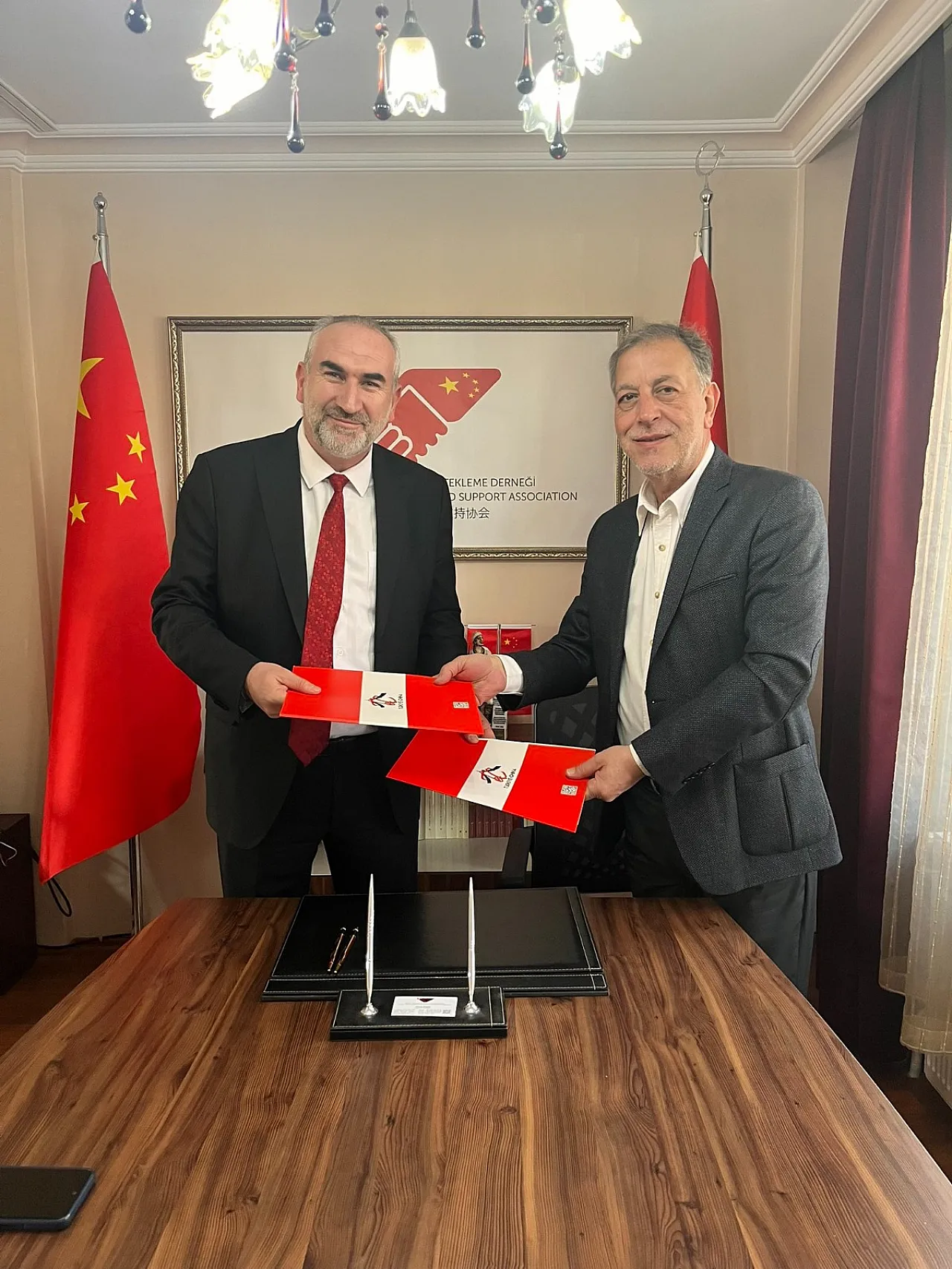 Türkiye-Çin İş Geliştirme ve Destekleme Derneği Genel Başkanı İhsan Beşer ile Afyonkarahisar Kültür ve Turizm Derneği Yönetim Kurulu Başkanı Salih Ünver arasında iş birliği protokolü imzalandı.