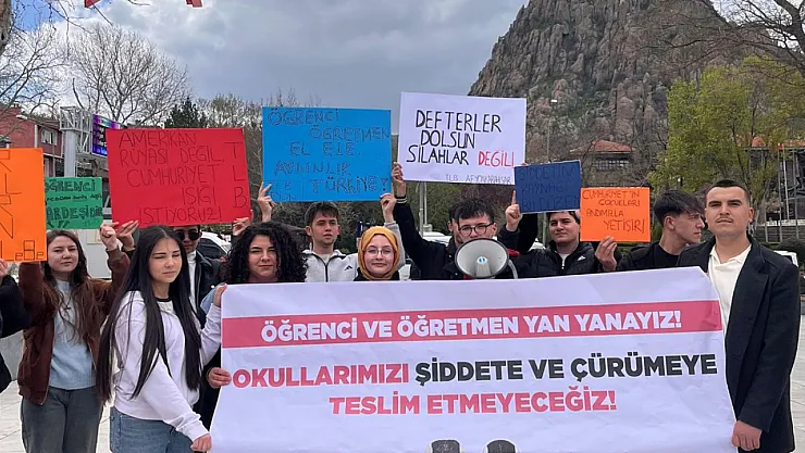 Açıklamayı TLB Afyon İl Başkanı Derya Adıyaman yaptı. Adıyaman, açıklamasında şu ifadelere yer verdi: “Öğrenci ve öğretmen yan yanayız. Okullarımızı şiddete ve çürümeye teslim etmeyeceğiz. Bugün burada yüreklerimiz sızlayarak toplandık. Şanlıurfa Siverek’te bir liseye, ardından Kahramanmaraş Onikişubat’ta bir ortaokula yapılan saldırılar sonucu sıra arkadaşlarımızı ve öğretmenlerimizi kaybettik. Yastayız, üzgünüz ama yıkılmıyoruz; kaybettiklerimizin anısı önünde omuz omuza duruyoruz.