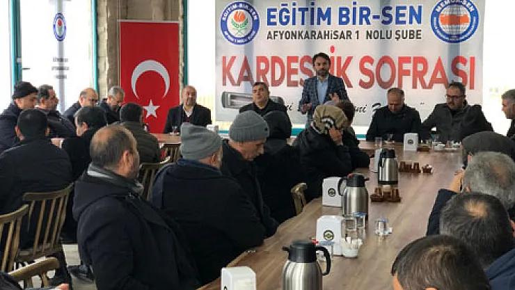 Eğitim Bir-Sen Şube Başkanı Mustafa Arslan, eğitim paydaşlarının 'Kardeşlik Sofrası' programında buluştuklarını, sendika olarak yetkili oldukları günden itibaren pek çok kazanıma imza attıklarını belirtti. Arslan, 'Güveni güce, gücümüzü ise kazanımlara vesile kılmaya devam edeceğiz' dedi   Eğitim Bir Sen Afyonkarahisar 1 Nolu Şubesi, İl Milli Eğitim Müdürlüğü ve Mesleki Eğitim Merkezi Müdürlüğü'nce 8 Ocak 2023 [&hellip]