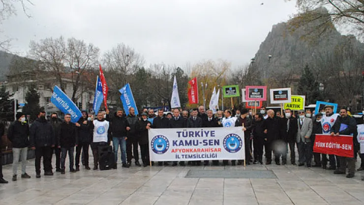 Türkiye Kamu-Sen’in 81 ilde eş zamanlı planladığı ek zam başta olmak üzere memurların taleplerinin sıralandığı basın açıklaması dün öğlen Zafer Meydanı’nda yapıldı. Kamu-Sen Afyonkarahisar İl Temsilcisi Mehmet Demir’i yaptığı açıklamada sendika şube başkanları ve üyeler yalnız bırakmadı.
