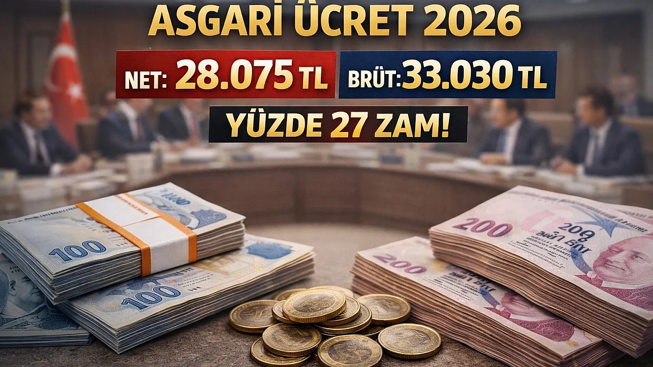Yapılan artışla birlikte 2026 yılı net asgari ücret 28 bin 75 lira olarak belirlendi. Brüt asgari ücret ise 33 bin 30 liraya yükseldi.