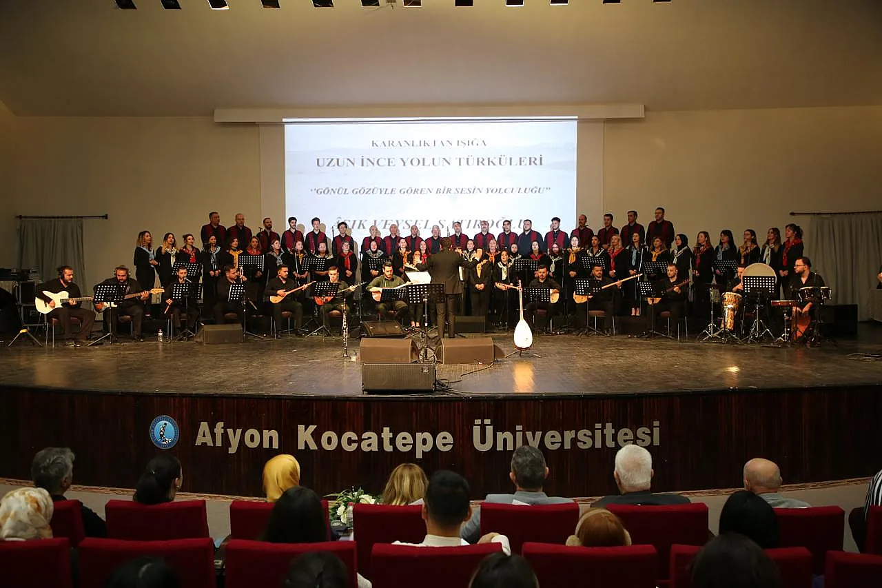 AKSAM Derneği tarafından, Afyon Kocatepe Üniversitesi Devlet Konservatuvarı iş birliğiyle hazırlanan ve Sanat Yönetmeni-Şef Emrah Kalın yönetiminde sahnelenen konserin giriş ve final bölümlerinde kurgulanan “Karanlıktan Işığa” temalı sahne anlatımı, Âşık Veysel’in yaşamından ve düşünce dünyasından ilham alan güçlü bir empati alanı oluşturdu.