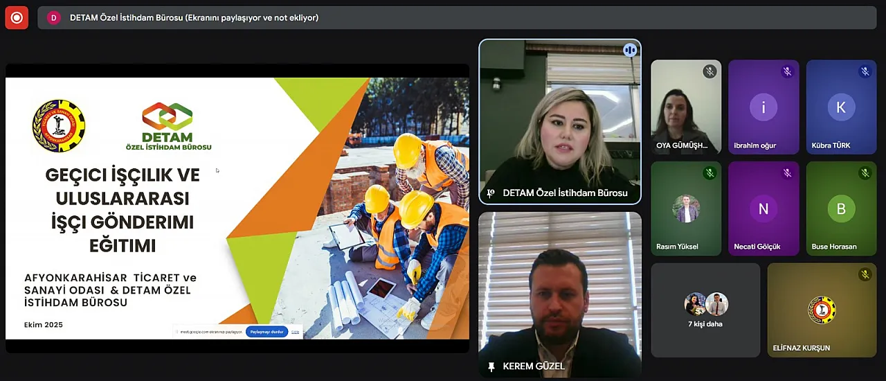 Güzel, konuşmasının devamında şunları kaydetti: “Eğitimlerde; ihracat yapan veya yurt dışı projeler yürüten firmalarımızın, İŞKUR ve SGK mevzuatı çerçevesinde yurt dışına işçi gönderim süreçlerinde dikkat etmesi gereken adımlar, gerekli belgeler ve uygulama detayları paylaşılacak. Ayrıca, kısa dönemli veya proje bazlı personel ihtiyaçlarını yasal ve güvenli biçimde karşılamaya imkân tanıyan geçici işçilik modeli, avantajları ve doğru uygulama örnekleriyle anlatılacak. Bugün bizlerle birlikte olan değerli eğitmenlerimiz Sayın Tolga Oğur ve Sayın Hayal Özçim’e bilgi ve deneyimlerini paylaşacakları için teşekkür ediyor, eğitimlerin tüm katılımcılarımız için faydalı ve verimli geçmesini diliyorum.”