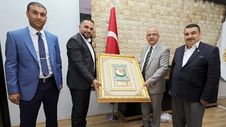 Ziyaret sonunda konuklar Başkan Çoban’a üzerinde Hilye-i Şerif bulunan tablo hediye etti.