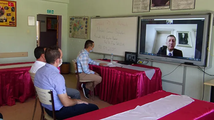 mesleki seminer toplantısına, telekonferansla bağlanarak öğretmenlerle görüştü