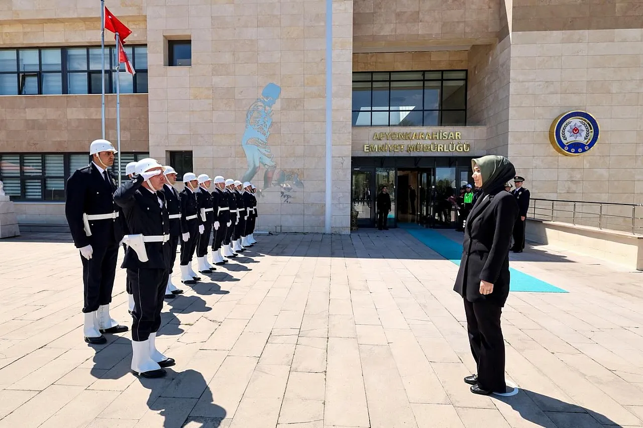İçişleri Bakan Yardımcısı Doç. Dr. Kübra Güran Yiğitbaşı’nı ziyareti öncesi Afyonkarahisar İl Emniyet Müdürü Ahmet Birtan Erol karşıladı. Yiğitbaşı, tören bölüğünü denetleyerek Afyonkarahisar İl Emniyet Müdürlüğü şeref defterini imzaladı.