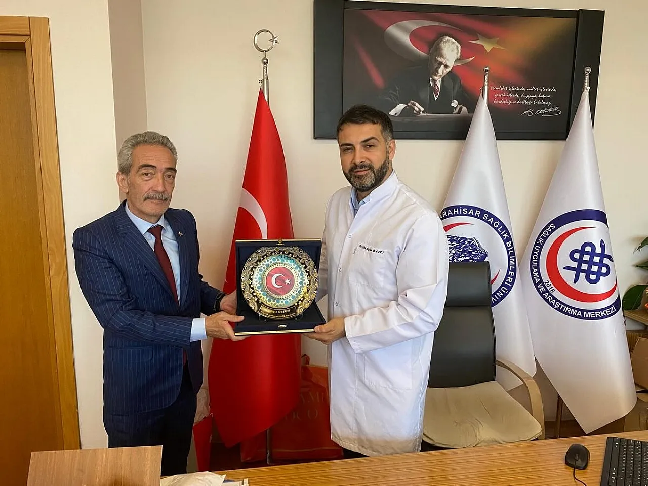 Afyonkarahisar Esnaf ve Sanatkârlar Odaları Birliği (ESOB) Başkanı Cengiz Üstün, Afyonkarahisar Sağlık Bilimleri Üniversitesi (AFSÜ) Sağlık Uygulama ve Araştırma Merkezi Başhekimi Doç. Dr. Aydın Balcı’yı makamında ziyaret etti.