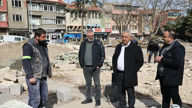İnşaat çalışmaları devam eden Gastronomi Sokağı’nda da incelemelerde bulunan Başkan Zeybek, çalışmalarla ilgili yetkililerden bilgi aldı.