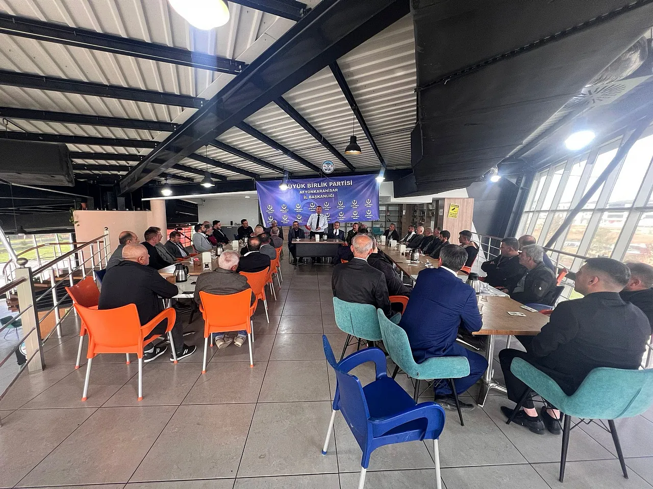 Büyük Birlik Partisi Afyonkarahisar İl Teşkilatı ilçe başkanlarının katılımıyla yaptığı istişare toplantısı yaptı. Toplantıda konuşan BBP İl Başkanı Süleyman Çağlar, "Büyük Birlik Partisi Afyonkarahisar İl Teşkilatı olarak sadece ilçe başkanlarımız ve yönetim kurulu üyelerinin katılımı ile geniş çaplı bir toplantı gerçekleştirdik. Büyük Birlik Partisi neredeyse ilçelerin tamamında teşkilat çalışmalarını tamamlamış bir partidir. Yaklaşmakta olan genel seçimler öncesinde teşkilat olarak bazı ilçelerde yeni bir ekiple ve yönetimle azimli ve kararlı bir şekilde seçim hazırlıklarına başlamış bulunmaktayız” dedi.