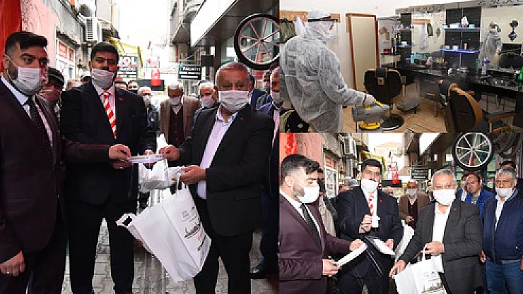 Uzun aranın ardından dükkanları açılan berber esnafın tamamına ücretsiz dezenfekte verildi.