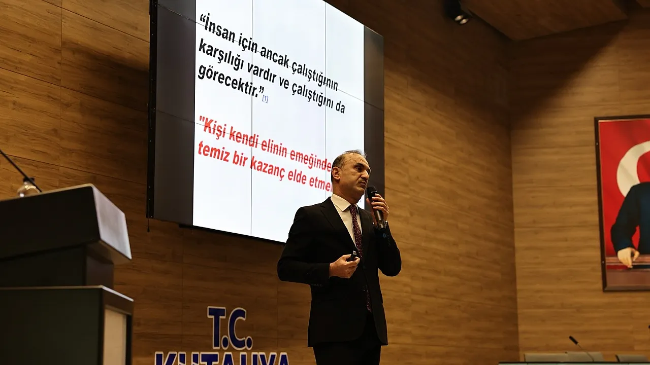 Kütahya Belediyesi personeline yönelik 'İş ahlakı' konulu eğitim programı, Kütahya İl Müftülüğü Din Hizmetleri Şube Müdürü Cemalettin Torun tarafından gerçekleştirildi.