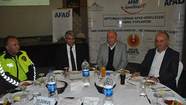 Afyonkarahisar İl Afet ve Acil Durum Müdürlüğü’nce (AFAD) önceki akşam bir termal otel’de AFAD Gönüllüleri Tanışma Toplantısı gerçekleştirildi. Toplantıya; Vali Yardımcısı Ümit Şeref Kayacan, daire müdürleri, çeşitli sivil toplum kuruluşlarının temsilcileri ve AFAD Gönüllüleri katıldı.