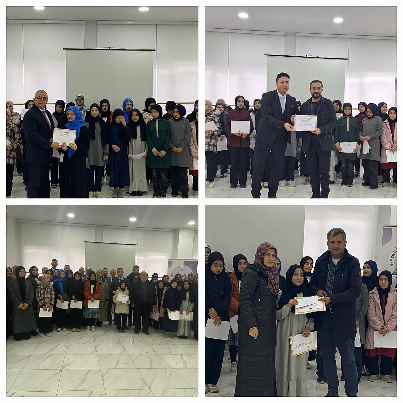 Kız öğrenciler arası “Kur’an-ı Kerim’i Güzel Okuma” yarışmasının 1’inci bölge finali Beyyazı İmam Hatip Ortaokulu koordinatörlüğünde Beyyazı Düğün Salonu’nda gerçekleştirildi.