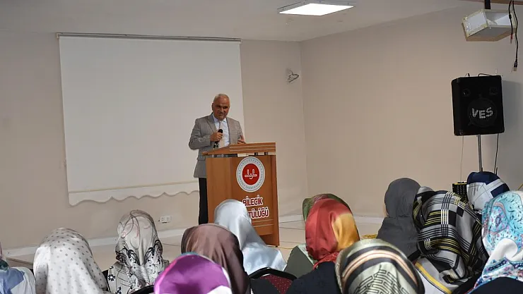 Veda konuşmasını yapan Aysel Hacıömeroğlu, “Bu güzide kurumun bir parçası olmaktan dolayı çok bahtiyarım. Elhamdülillah rabbimize ki bizleri bu kuramda istihdam etmiş, hem dünyamızı hem de ahiretimizi imar etme fırsatı sunmuş. Bilecik’te çalıştığım süre içerisinde hoş bir seda bırakabilmişsem kendimi çok bahtiyar hissedeceğim. Başta, çalışmalarımızda bizlerden desteklerini esirgemeyen müftü hocama ve sonra siz kıymetli Kur’an Kursu öğreticilerimize her alanındaki gönüllülerine teşekkür ediyorum” dedi.
