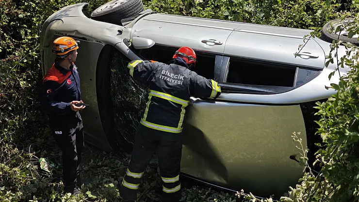 Bilecik'te seyir halinde kontrolden çıkan otomobilin dere yatağına yuvarlanması sonucu meydana gelen trafik kazasında 3 kişi yaralandı.