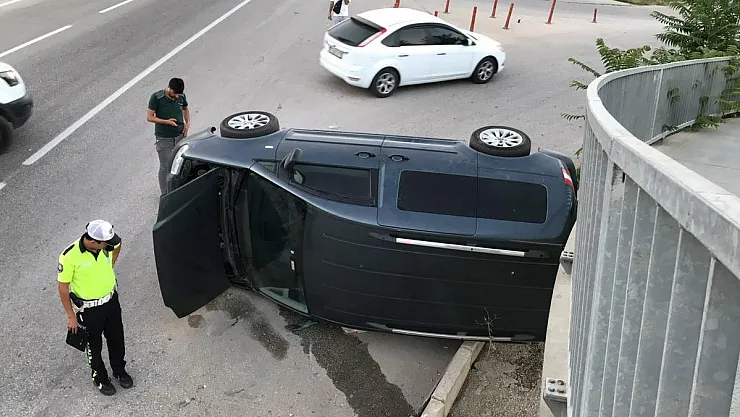 Bilecik’te kontrolden çıkan araç, üst geçidin demir ayaklarına çarparak durdu
