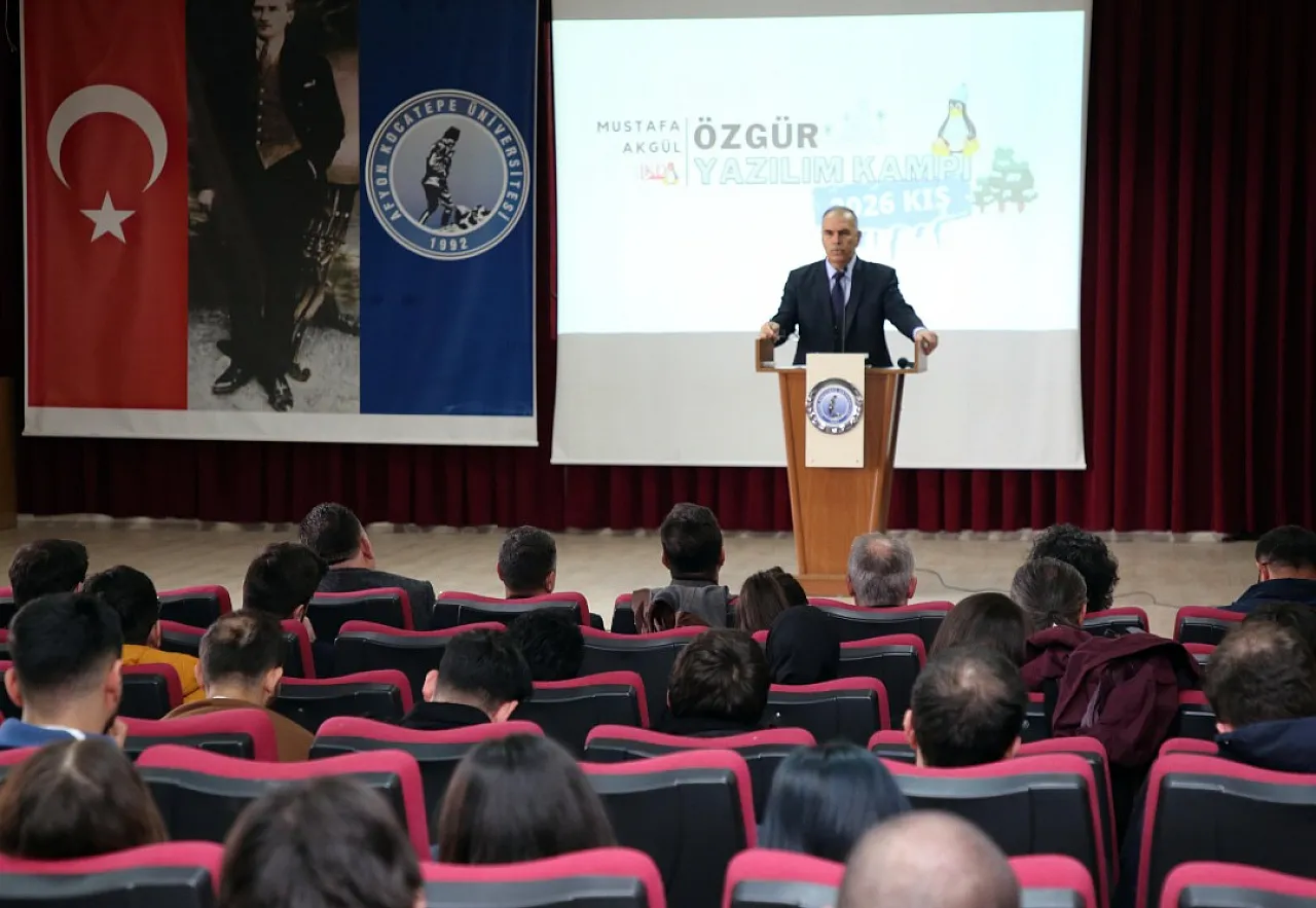 Abdullah Kaptan Konferans Salonunda gerçekleştirilen Mustafa Akgül Özgür Yazılım 2026 Kış Kampı açılış programına; AKÜ Rektör Yardımcısı Prof. Dr. Şuayıp Özdemir, Genel Sekreter Hasan Düzgün, AKÜ Bilgi İşlem Daire Başkanı Ramazan Sami Çınar, Sağlık Kültür ve Spor Daire Başkanı Gürbüz Bıdık, Linux Kullanıcıları Derneği Yönetim Kurulu Başkanı Türker Gülüm, Pardus Eğitmeni Şenol Aldıbaş ile öğrenci kulüp ve topluluk üyeleri ve sektör temsilcileri katıldı.