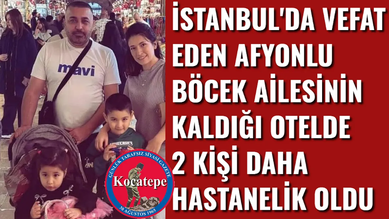 Zehirlendiği düşünülen ve geride büyük acılar bırakarak Afyonkarahisar-Bolvadin'de toprağa verilen Böcek ailesinin kaldığı İstanbul-Fatih'teki otelde iki kişi daha hastaneye kaldırıldı. Otelde birkaç gün önce ilaçlama yapıldığı belirtildi.