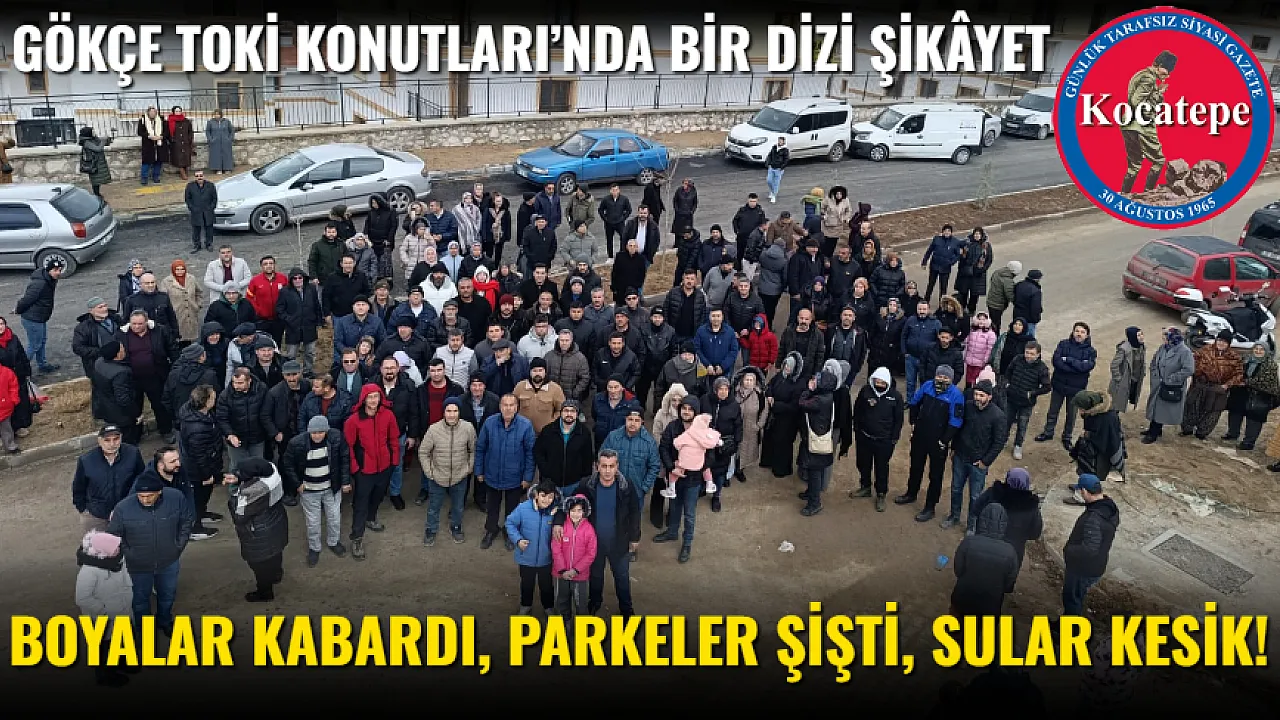 kar yağdığında bile dik yokuşlu yollara sahip olan Gökçe TOKİ’de en ufak bir önlem alınmamış olup kazalara sebebiyet verilmiştir. Sormak istiyoruz: Proje yapılırken TOKİ, yüklenici firmayı hiç mi denetlemedi? Bu eksikliklerin ve ihmallerin bedelini neden biz hak sahipleri ödüyoruz? Yaşadığımız tüm bu mağduriyetler konusunda yetkili mercilerden acil destek ve çözüm bekliyoruz. Henüz teslim edilmemiş konutların ve işyerlerinin su, elektrik, atık su tesisatları başta olmak üzere teslimat öncesi titizlikle yeniden denetlenmesini talep ediyoruz. Teslim edilen konutlardaki 'Ayıplı imalatların' yüklenici firma tarafından ivedilikle tadil edilmesini istiyoruz. Yol ve ulaşım sorunları için gerekli önlemlerin alınıp, TOKİ girişinin düzenlenmesini ve genişletilmesini, ayrıca otobüs seferlerinin TOKİ içine kadar başlatılmasını istiyoruz. Mağduriyetimize sebebiyet veren denetim eksikliklerinin sorumluları hakkında gerekli incelemenin yapılmasını talep ediyoruz. Taleplerimiz nettir; güvenli, yaşanabilir konutlar istiyoruz. Sözü fazla uzatmadan, yaşadığımız bu haksızlığın kamuoyu tarafından bilinmesini ve hak sahiplerinin sesinin duyulmasını istiyoruz.”