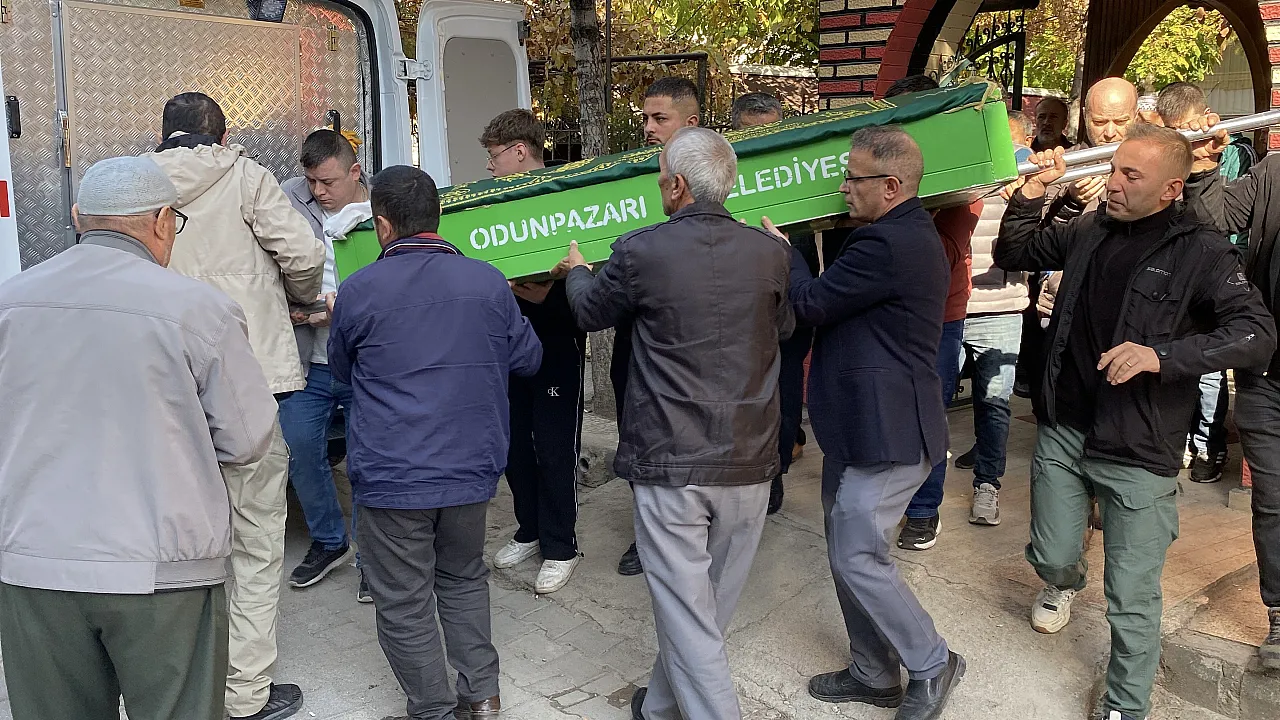 Eskişehir'de bıçakla boynu kesilmiş halde ölü bulunan 70 yaşındaki kadın son yolculuğuna uğurlanırken, özel gereksinimli oğlu adliyeye sevk edildi.