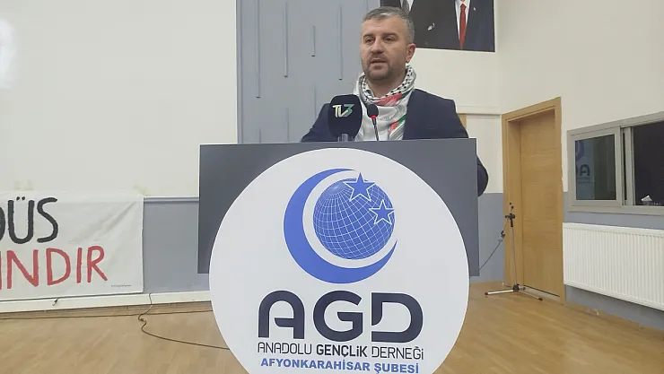 İstiklal Marşı'nın ardından selamlama konuşmasını AGD Afyonkarahisar Şube Başkanı Muharrem Coşkun yaptı. Coşkun konuşmasında, "Diyarbakır'ın, Ankara'nın, İstanbul'un müdafaası Kudüs'ten başlıyor." ifadelerini kullandı. İşgalci İsrail'in, Gazze'de soykırım yaptığının altını çizen Coşkun, "Fetih, nefs karşısında imanın zaferiyle başlar. Mekke'nin Fethi, İstanbul'un Fethi, Anadolu'nun Fethi nasıl gerçekleştiyse yakında inşallah Kudüs'ün, Gazze'nin, Filistin'in de fethi gerçekleşecek. Bugün olmazsa da yarın ama çok yakında Kudüs özgür olacaktır." dedi.