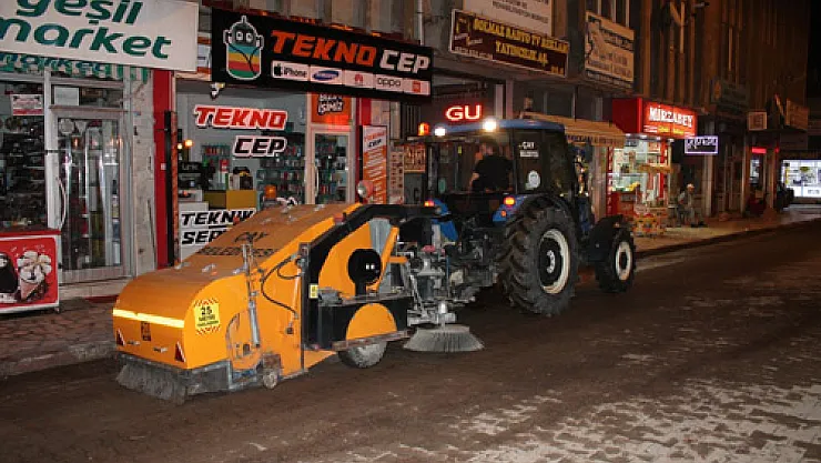 Çay Belediyesi, hafta sonu ilçede etkili olan sağanak sonara yollarda oluşan çamur birikintilerini temizliyor