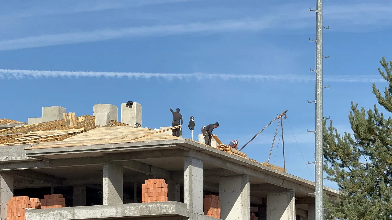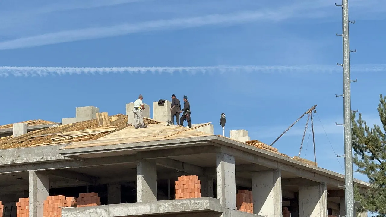 Görüntülerde işçilerin halat ya da farklı bir güvenlik önlemi olmamasına rağmen yerden yaklaşık 20 metre yüksekte yürümeleri ve malzeme taşıdıkları anlar yürekleri ağza getirdi.