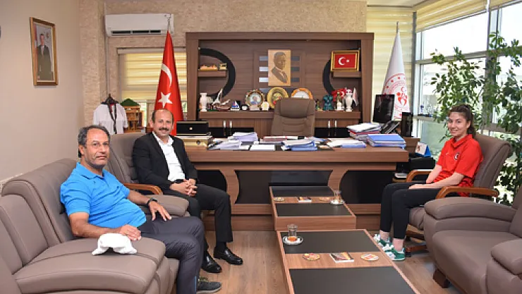 Paralimpik Tekvandocu Milli Sporcu Meryem Betül Çavdar ve antrenörü İsmail Bulduk, Afyonkarahisar Gençlik ve Spor İl Müdürü Feyzullah Dereci’yi ziyaret etti