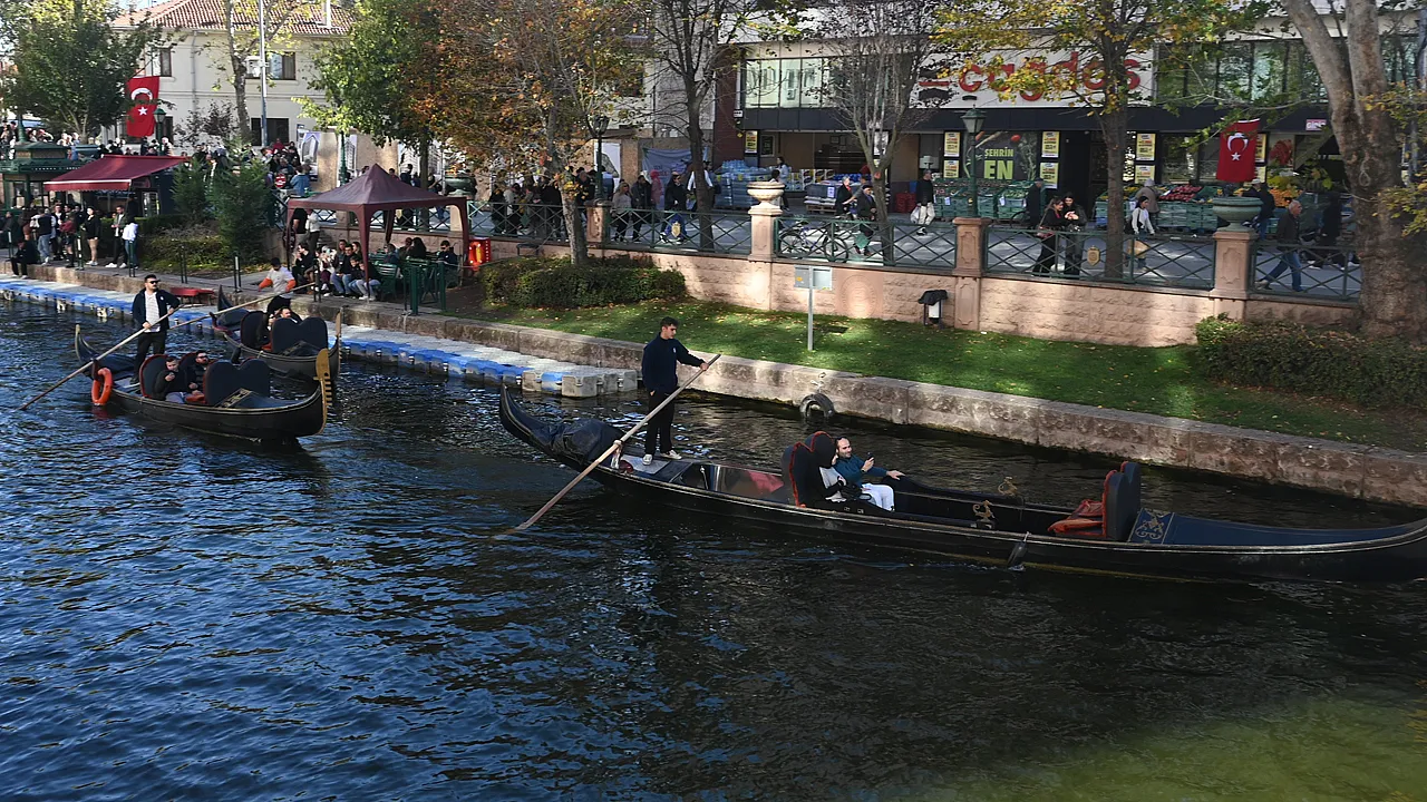 29 Ekim Cumhuriyet Bayramı'nı kapsayan resmi tatili fırsat bilen çok sayıda vatandaş, Türkiye'nin Venedik'i olarak bilinen Eskişehir'e akın etti. Havanın güzel olmasını değerlendiren yerli turistler, kentin simgelerinden biri olan Porsuk Çayı'ndaki gondollara binmek için iskelelerde yoğunluk oluşturdu. Gondol keyfi yapmak için dakikalarca sırada bekleyen ziyaretçiler, Porsuk Çayı üzerinde keyifli anlar yaşarken bol bol hatıra fotoğrafı çektirmeyi de ihmal etmedi.