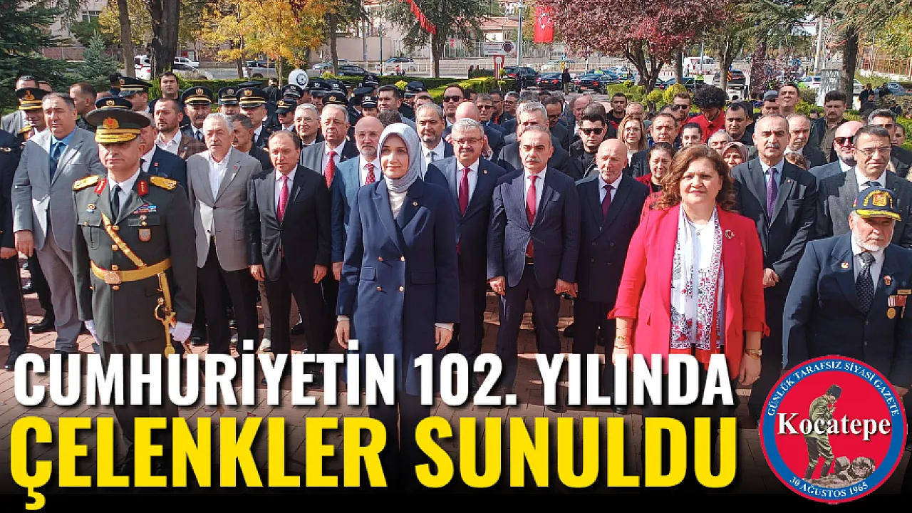 102’inci yıl kutlamaları kapsamında Afyonkarahisar Valisi Doç. Dr. Kübra Güran Yiğitbaşı ve il protokolünün katılımıyla düzenlenen törende Kocatepe Parkı Atatürk Anıtı’nda çelenk töreni gerçekleştirildi.