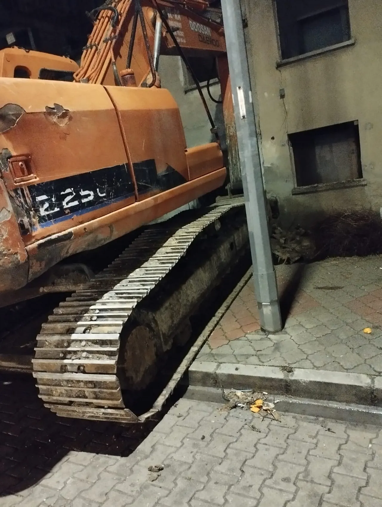 Cumhuriyet Mahallesi Ali Celal Caddesi yan sokağında bulunan bir binanın yıkım işi için gelen iş makinası günlerdir bekliyor.